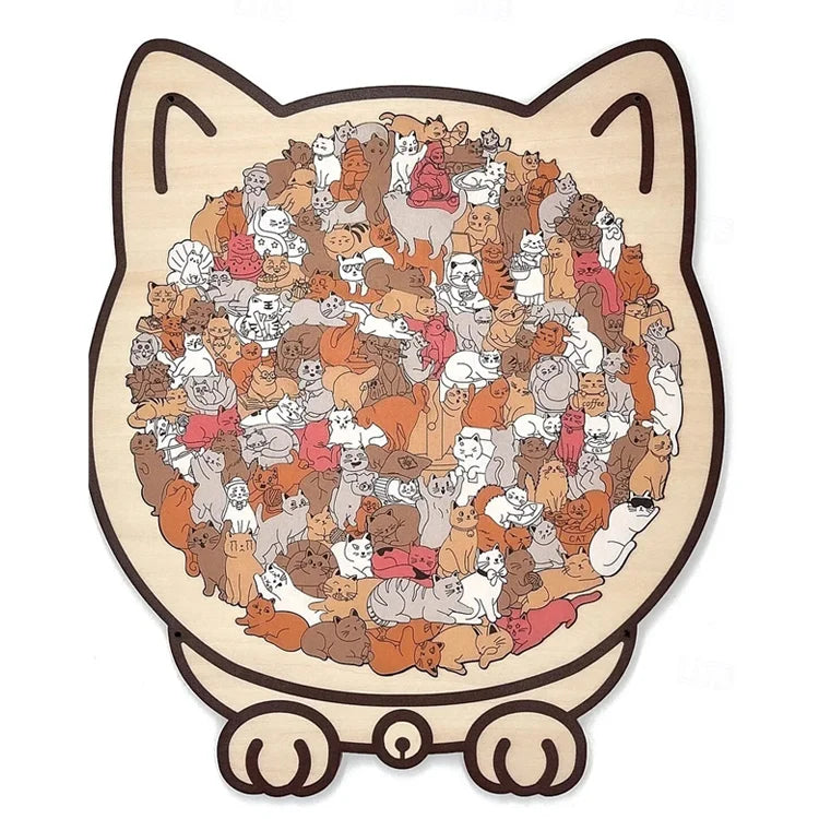 BloomCraft™ Cat-Shaped Wooden Puzzle