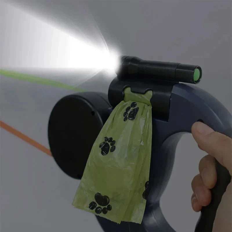🐶 Dual Retractable Dog Leash with Flashlight & Waste Bag Holder