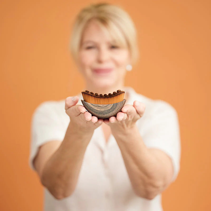 With its ergonomic contour design and patented bristle density pattern, it aligns perfectly with your skin’s surface and lymph pathways, mimicking the natural contractions of lymph vessels to encourage flow and glow.