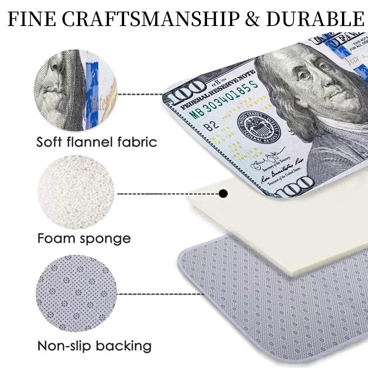 Inspired by the iconic $100 bill and Benjamin Franklin himself, this rug brings bold style with a playful edge. It looks luxe, ironic, and oddly satisfying — like stepping on money without the guilt.